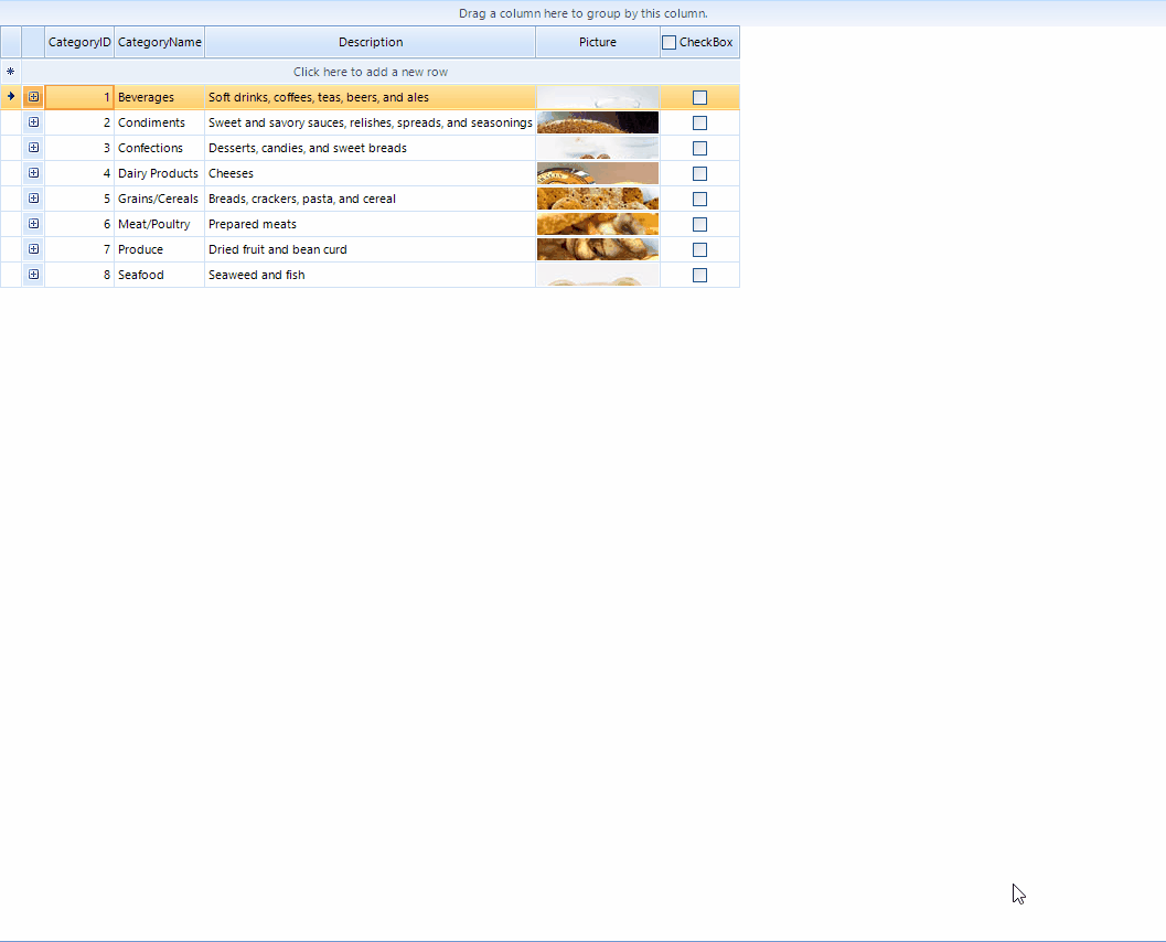 void GridControl_ValueChanged(object sender, EventArgs e) { RadCheckBoxEditor editor = sender as RadCheckBoxEditor; if (editor != null) { this.GridViewElement.EditorManager.EndEdit(); if ((ToggleState)editor.Value == ToggleState.Off) { SetCheckBoxState(ToggleState.Off); } else if ((ToggleState)editor.Value == ToggleState.On) { bool found = false; foreach (GridViewRowInfo row in this.ViewInfo.Rows) { if (row != this.RowInfo && row.Cells[this.ColumnIndex].Value == null || !(bool)row.Cells[this.ColumnIndex].Value) { found = true; break; } } if (!found) { SetCheckBoxState(ToggleState.On); } } } }Thanks