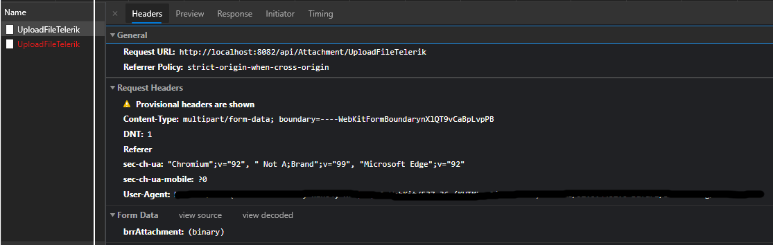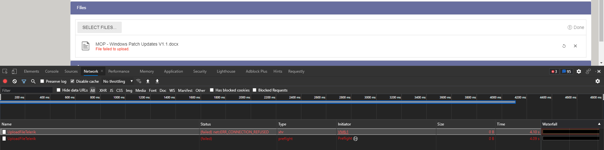 Through the portal, the registered clients work perfectly. However, the Upload Control fails at uploading a file: