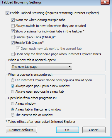 I've run into some issues around automating popups that exit out to another URL with my default browser settings. When I am recording with IE9 and my internet options are set to allow IE9 to decide between opening links in a new Tab or a new Window, I'm not getting the "Connect to Pop-up Window" step during my recording (it appears the record control is staying focused on the initial tab and not being applied to the new tab even though it appears there). The work around is to change your IE settings to always open links in a new window. This causes the record control to populate on the new window when it is opened and you can proceed with recording.