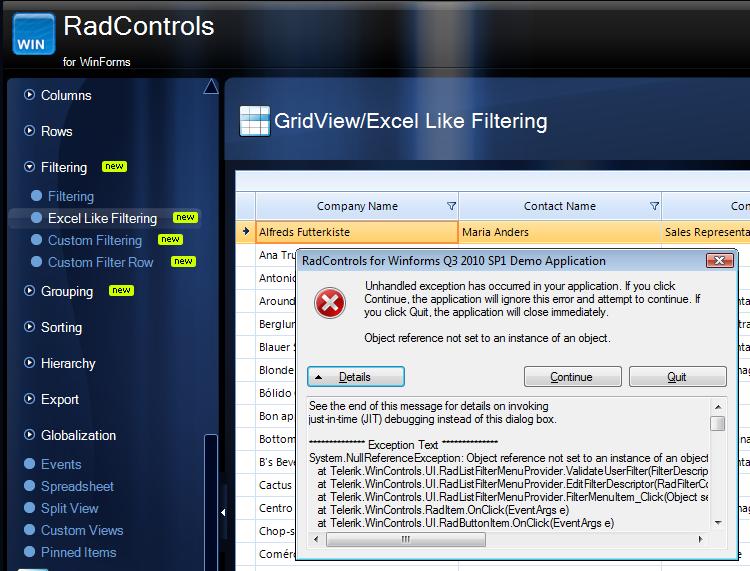 at Telerik.WinControls.UI.RadListFilterMenuProvider.FilterMenuItem_Click(Object sender, EventArgs e)