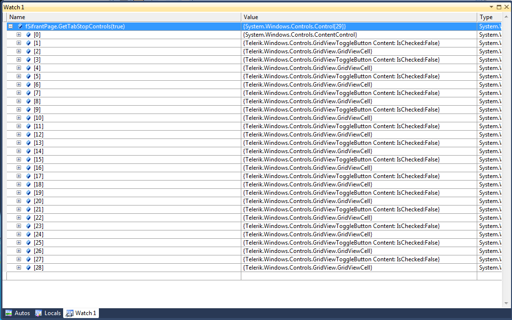 Then i set RadGrid.IsTabStop = true, and RadGridTabStop = false; and on a button click i find 29 elements, that have IsTabStop = true.