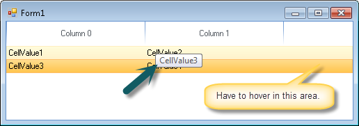public partial class Form1 : Form{ public Form1() { InitializeComponent(); new RadControlSpyForm().Show(); this.radListView1.ViewType = Telerik.WinControls.UI.ListViewType.DetailsView; var info = new DirectoryInfo(Environment.CurrentDirectory); FileInfo[] files = info.GetFiles(); this.radListView1.DataSource = files; this.radListView1.ShowItemToolTips = true; this.radListView1.ToolTipTextNeeded += radListView1_ToolTipTextNeeded; } void radListView1_ToolTipTextNeeded(object sender, Telerik.WinControls.ToolTipTextNeededEventArgs e) { DetailListViewDataCellElement element = sender as DetailListViewDataCellElement; if (element != null) { e.ToolTipText = element.Text; } }}Hope this helps, if you have any other questions or comments, please let me know.