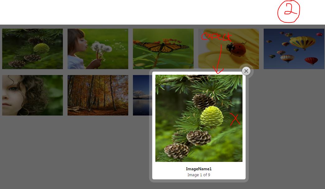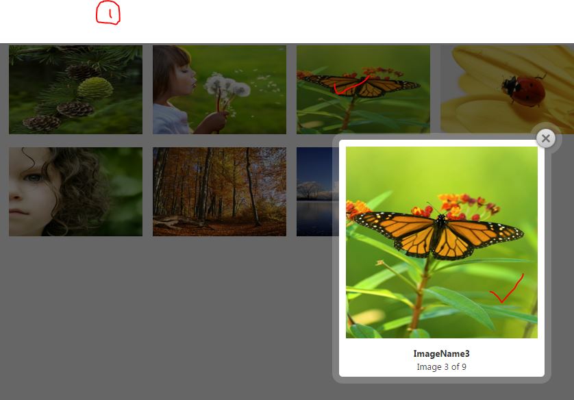 function mainImageClick() { var lightBox1 = $find('<%= RadLightBox1.ClientID %>'); var ind = document.getElementById('<%= HiddenImgIndex.ClientID%>').value; var currentInd = lightBox1.get_currentItemIndex(); lightBox1.show(); if (ind != currentInd) { lightBox1.navigateTo(ind); } }All works as expected with the right image displayed accept that the item counter when opening displays an incorrect index number, appears to prefix a digit. See screenshots to see result.