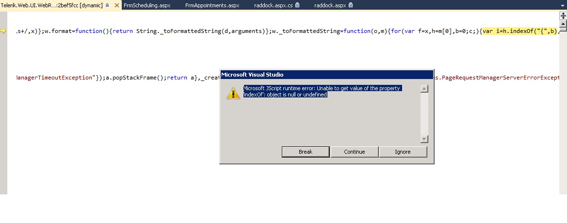 I am getting a javascript error as "Microsoft JScript runtime error: Unable to get value of the property 'indexOf': object is null or undefined" while clicking on a time slot and selecting 'new appointment'.