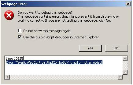 I have to implement Autocomplete functionality on RadComboBox, functionality is working fine. But on page load, I am facing Javascript error. Like ‘Telerik.Webcontrols.RadComboBox’ is null or not an object.