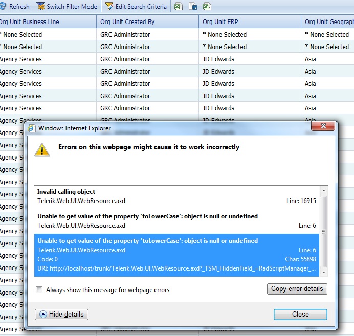 Hi, I am getting javascript error when I clicked on Export to Excel button of RadGrid. Please see the attached file.