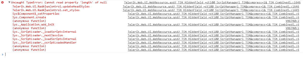 - Uncaught TypeError: Cannot read property 'length' of null Telerik.Web.UI.WebResource.axd:7809