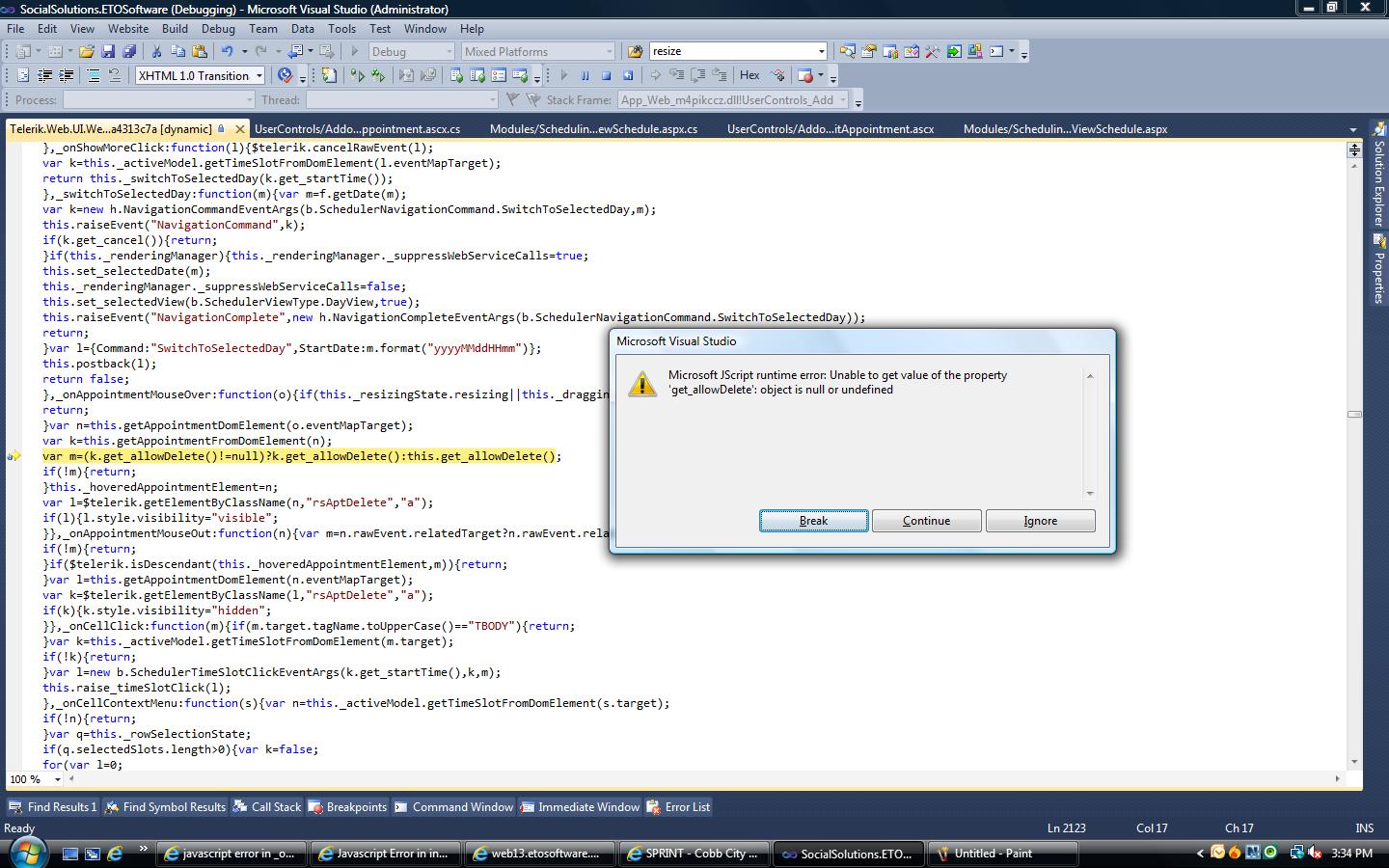 "Microsoft JScript runtime error:Unable to get value of the property 'get_allowDelete': object is null or undefined"