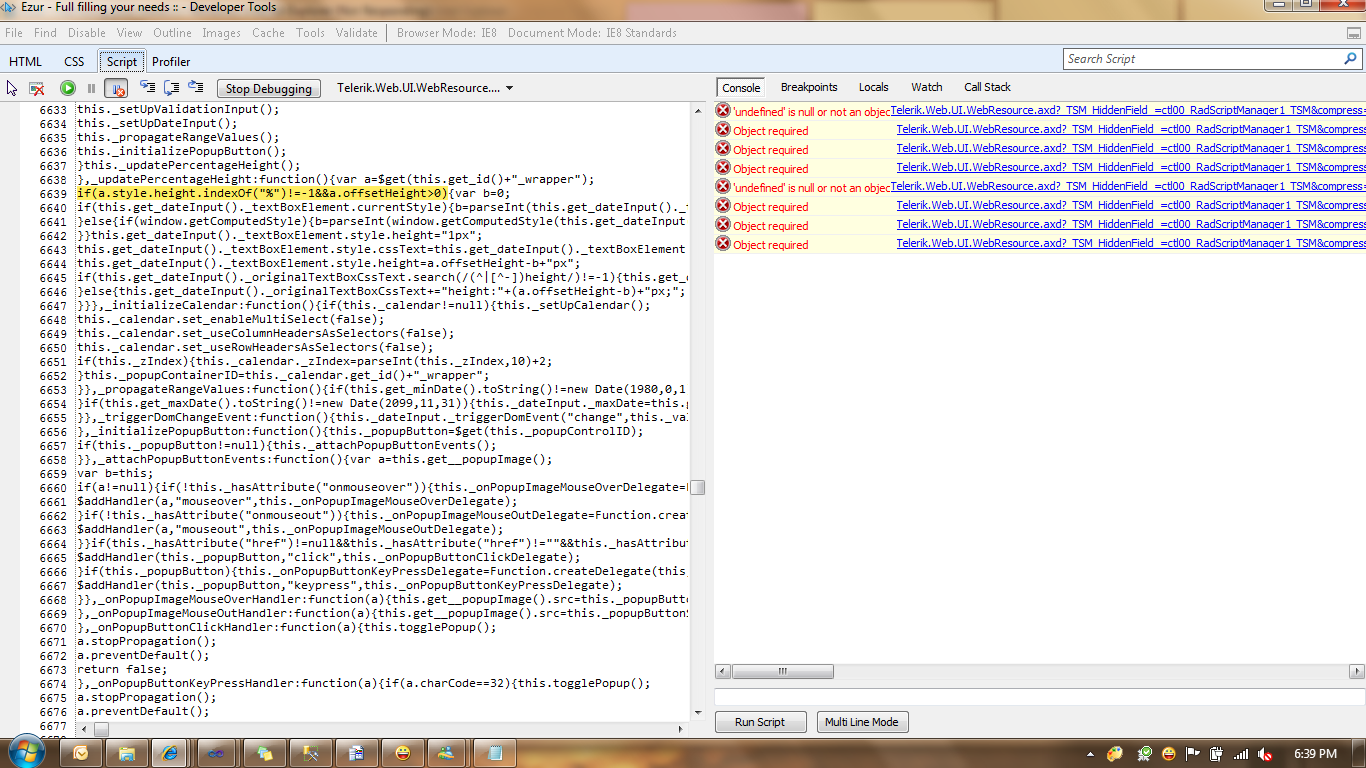 I don't suppose this was ever resolved? I seem to be experiencing the same issue, but it's when I attempt to set the tabstrip's OnClientTabSelecting/Selected methods. It tells me that they're undefined, despite them most definitely being defined. I'm using (I believe) Q1 2010.