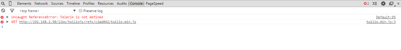 "UnCaught ReferenceError: Telerik is not defined"
