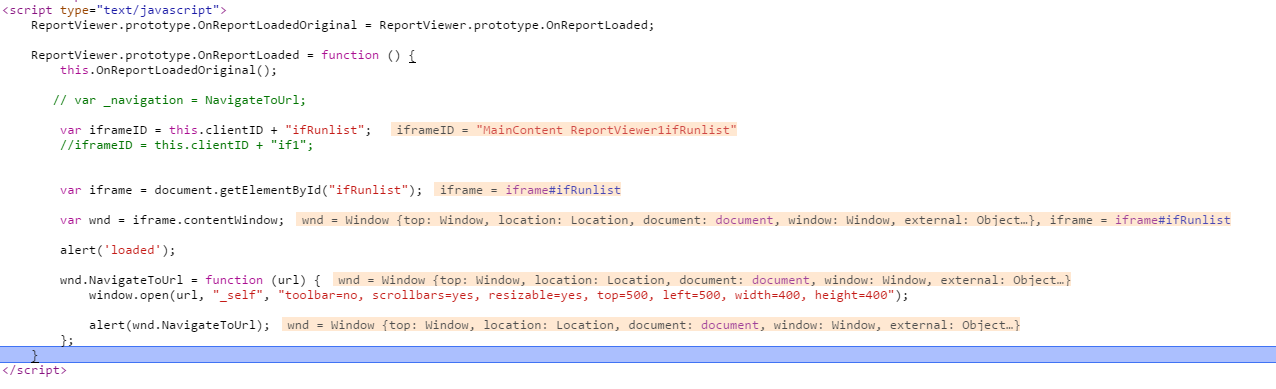 override NavigateToUrl(url, target) so that the report is displayed in the