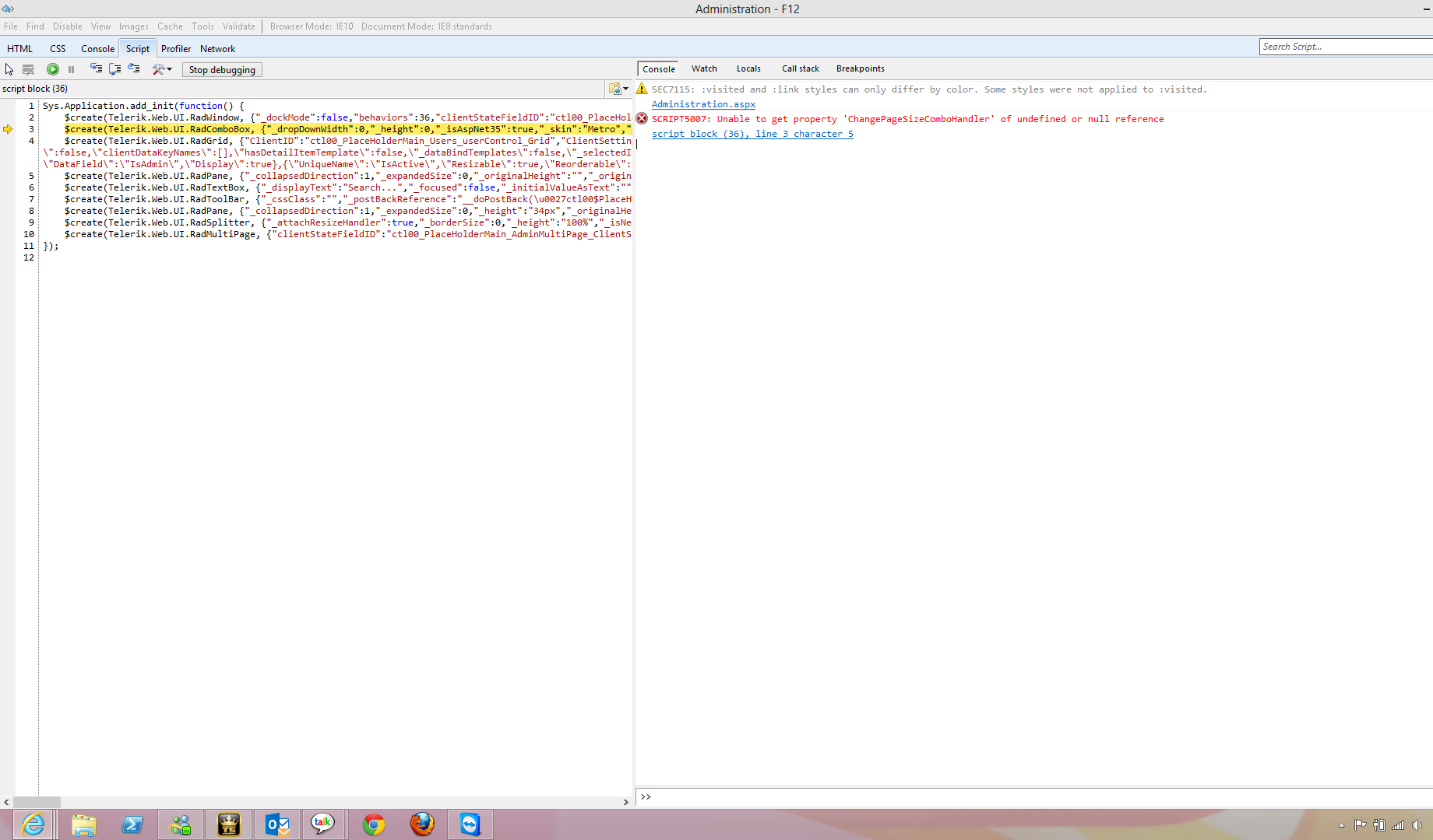 It fails in not only IE 10 but in IE 9, FF and Chrome too. Although the errors are not the same for FF and Chrome.