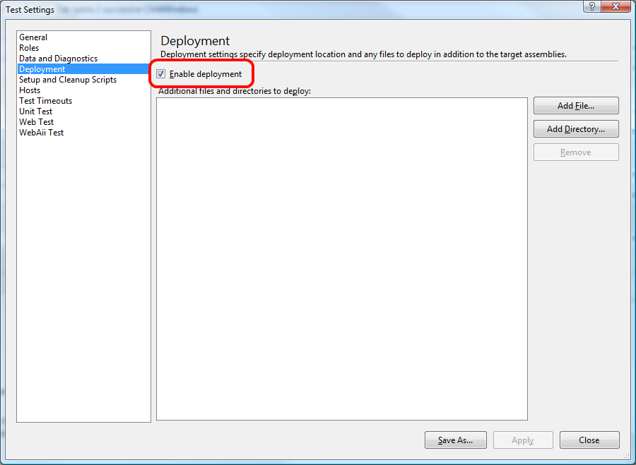 I'm getting the following error when I run any test with a data source in Visual Studio. I have no problem creating or running alone but when I have VS run the tests, these all fail. My machine is running Windows 2008 SP2 64 bit. I have verified the items and paths are present and have even recreated mutiple times.