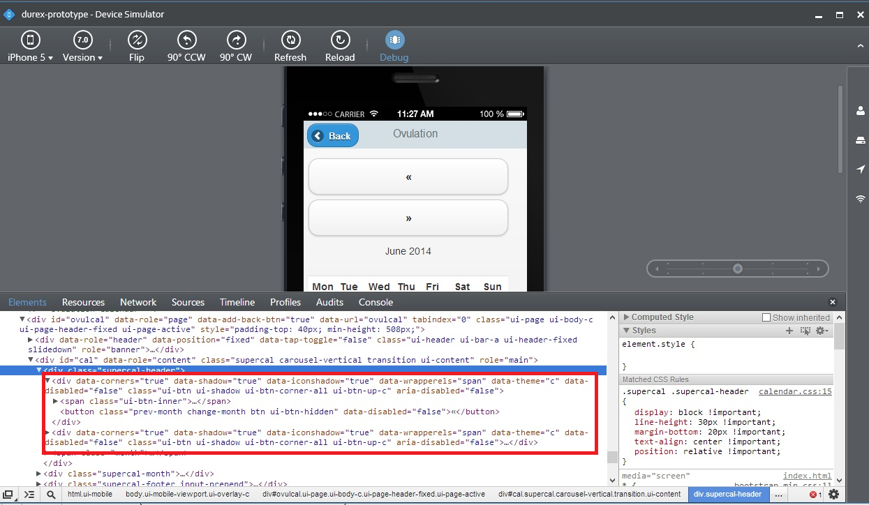 When I open that page jquery.mobile-1.3.1.min.css adds some classes to the button, div and span tag. Here is picture>