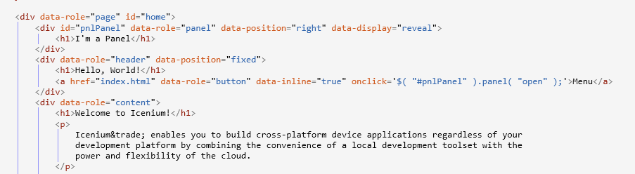 <h1>Welcome to Icenium!</h1>
