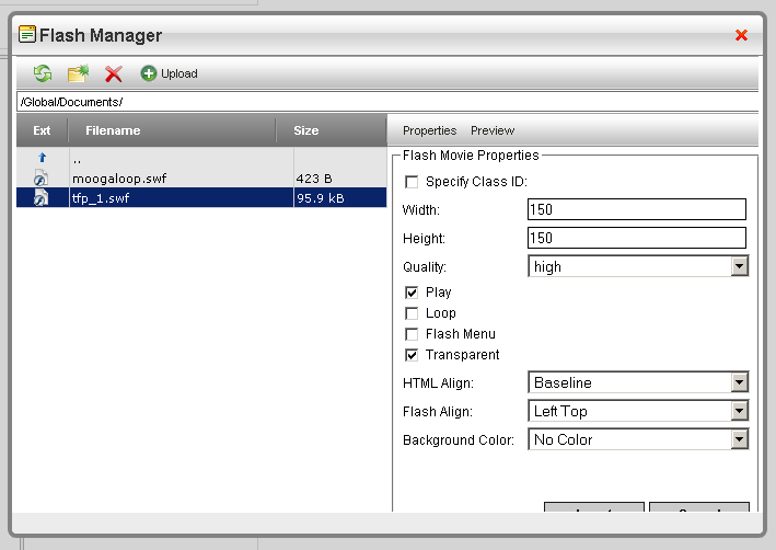 Hi, i downloaded the trial and copied the FlashManager.asCx provided in ../EditorDialogs/ and then i tried to customize it. Having solved all "localization" errors, i still get the following error (using the provided sourcecode):