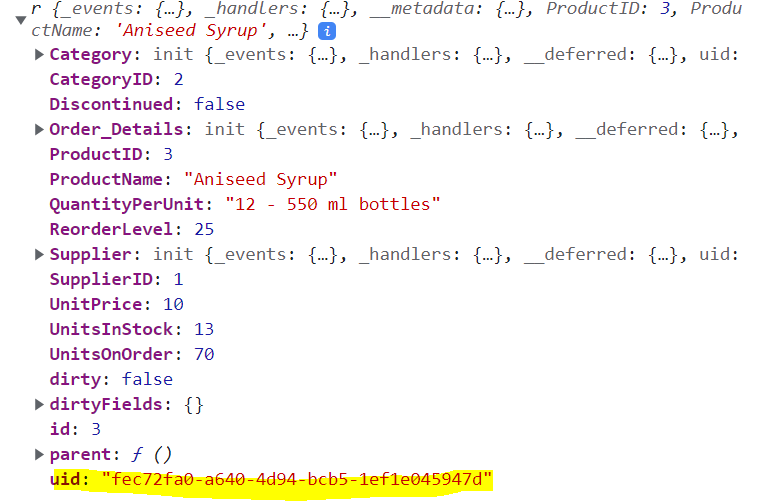 Every row contains a data-uid attribute that corresponds to the model uid property. The line in question finds the row by the uid and later uses it to select the row.
