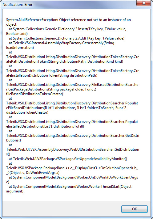 I also have installed the Telerik MVC VSExtensions and the WebUI VSExtensions (not being used in the project in question).