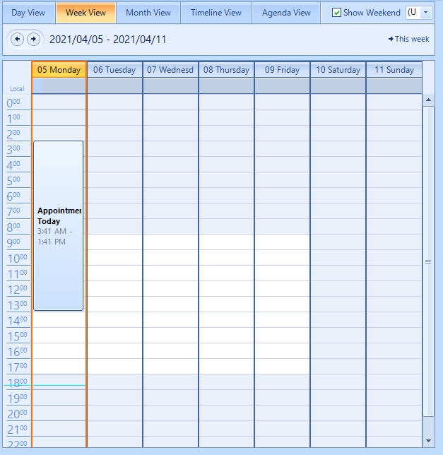 I am currently using a Scheduler control in weekview where the range of hours that's visible is about 6 hours.