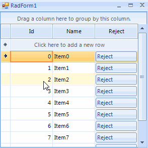 I have a rad grid view displaying from a data source. for each row there are two buttons i.e approve and reject. I need to selectively approve or reject each row. On Click of a save button i have to save them back to database.
