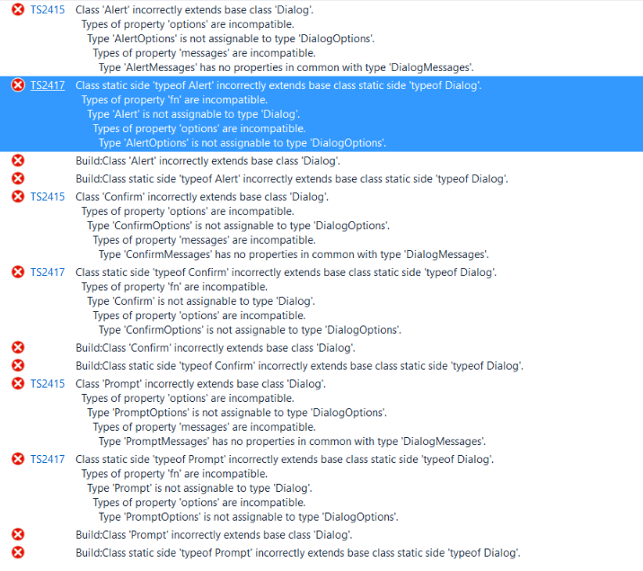 I just wanted to point out that, while this solution appears to fix the problem, the real solution is to properly implement generics and inheritance on the Dialog and DialogOptions classes so that they can be leveraged properly.
