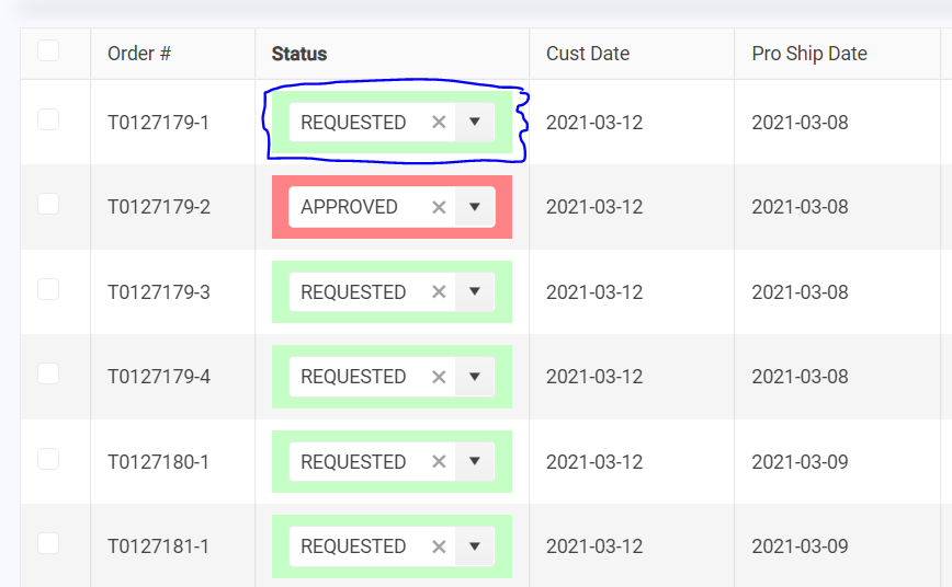 dataItem.status is an object like {value:1, description:"PROCESS"}