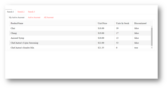 We have one requirement, where we want to implement the Kendo UI grid within the tab strip. In our example it may be possible that one tab strip has multiple sub tab strip and each tab strip have a Kendo UI grid as shown in the screenshot below: