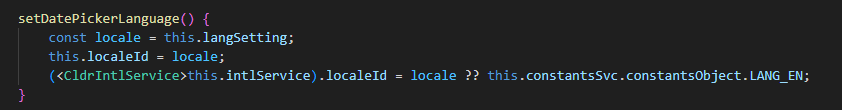 In the datepicker component, I have implemented the language switching function. Here is the relevant code for the language switching.