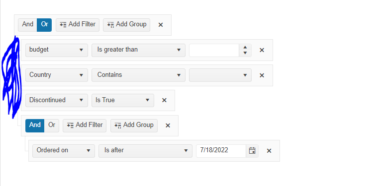 For the "Filter Component", is there any way to use the template to add an 'DropdownTree' before the first column?(Blue marked on the image)