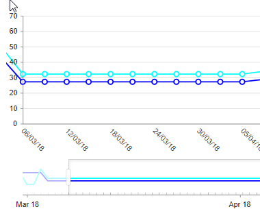 I have fixed the end points being cut off by adding .Panes(panes => panes.Add().Clip(false))