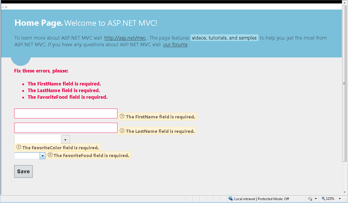 Please see the example view below. I have two html textboxes, a kendo combobox, and a standard html drop down. The two html textboxes and the drop down display validation messages within the summary as well as next the field. The Kendo ComboBox validation message only displays a message next to the field - it's message does not appear in the summary.