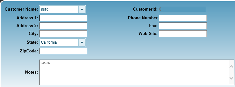<div class="SectionBoxGradient" style="padding: 10px"> @using (@Html.BeginForm("AddCustomer", "TotalvCRM", FormMethod.Post, new{id="CustomerForm"})) { <table> <tr> <td class="FieldLabel"><input type="hidden" id="CustomerName" name="CustomerName"/>@Html.LabelFor(model => model.CustomerName):</td> <td>@(Html.Kendo().ComboBox().Name("CustomerId").DataTextField("Text").DataValueField("Value").BindTo(Model.Customers).Placeholder("-- Select a Customer --")) </td> <td class="FieldLabel">@Html.LabelFor(model => model.CustomerId):</td> <td class="FieldLabel" style="text-align: left;"><input type="text" id="lblCustomerId" value="@Model.CustomerId" style="background: #569bbe; border:none;" disabled="disabled"/></td> <td class="FieldLabel"><label id="labelCreateDate" title="CreateDate"></label></td> </tr> <tr> <td class="FieldLabel">@Html.LabelFor(model => model.Address1)</td> <td>@Html.TextBoxFor(model => model.Address1,new{tabindex="2"}) @Html.ValidationMessageFor(model => model.Address1)</td> <td class="FieldLabel">@Html.LabelFor(model => model.BusinessPhoneNumber)</td> <td>@Html.TextBoxFor(model => model.BusinessPhoneNumber,new{tabindex="7"})</td> <td class="FieldLabel" style="text-align: left;"><label id="labelAssignedReps" title="Assigned Representitive" >Assigned Representatives:</label></td> </tr> <tr> <td class="FieldLabel">@Html.LabelFor(model => model.Address2)</td> <td>@Html.TextBoxFor(model => model.Address2,new{tabindex="3"})</td> <td class="FieldLabel">@Html.LabelFor(model => model.FaxPhoneNumber):</td> <td>@Html.TextBoxFor(model => model.FaxPhoneNumber, new { tabindex = "8" })</td> <td rowspan="3">@Html.ListBox("AssignedReps",Model.AssignedReps, new{disabled = "disabled", style = "width:100px"})</td> </tr> <tr> <td class="FieldLabel">@Html.LabelFor(model => model.City)</td> <td>@Html.TextBoxFor(model => model.City, new{tabindex = "4"}) @Html.ValidationMessageFor(model => model.City)</td> <td class="FieldLabel">@Html.LabelFor(model => model.WebUrl):</td> <td>@Html.TextBoxFor(model => model.WebUrl, new { tabindex = "9" })</td> </tr> <tr> <td class="FieldLabel"><label id="labelState" title="State">State:</label></td> <td> @(Html.Kendo().ComboBox() .Name("StateAbbreviation") .DataTextField("Text") .DataValueField("Value") .Filter(FilterType.Contains) .DataSource(source => source.Read(read => read.Action("GetStatesList", "List"))) .Placeholder("-- Select a State --"))</td> <td class="FieldLabel"></td> <td></td> </tr> <tr> <td class="FieldLabel">@Html.LabelFor(model => model.ZipCode)</td> <td>@Html.TextBoxFor(model => model.ZipCode, new{tabindex="6"}) @Html.ValidationMessageFor(model => model.ZipCode)</td> <td></td> <td></td> <td> @if (Model.CustomerId == 0) { <a href=@Url.Action("AssignReps", "TotalvCRM", new { id = Model.CustomerId}) id="lnkAssignRepsAction" disabled = "disabled" class="button" >Assign Reps...</a> } else {<a href=@Url.Action("AssignReps", "TotalvCRM", new { id = Model.CustomerId }) id="lnkAssignRepsAction" class="button">Assign Reps...</a>} </td> </tr> <tr> <td class="FieldLabel"><label id="labelNotes" title="Notes" >Notes:</label></td> <td colspan="3">@Html.TextAreaFor(model => model.Note, new { @cols = "75", @rows = "5", tabindex = "11" })</td> <td> <table> <tr> <td class="FieldLabel" style="text-align: left;"><label id="labelCustomerCategories" title="CustomerCategories" >Customer Categories:</label></td> </tr> <tr> <td>@Html.ListBox("CustomerCategories", Model.CustomerCategories, new { disabled = "disabled", style = "width:100px" })</td> </tr> <tr> <td>@if (Model.CustomerId == 0) { <a href=@Url.Action("CustomerCategories", "TotalvCRM", new { id = Model.CustomerId}) id="lnkCustomerCategories" disabled = "disabled" class="button" >Customer Categories...</a> } else {<a href=@Url.Action("CustomerCategories", "TotalvCRM", new { id = Model.CustomerId }) id="lnkCustomerCategories" class="button">Customer Categories...</a>} </td> </tr> </table> </td> </tr> <tr> <td colspan="4" > <a href="JavaScript:void(0);" onclick="formSubmit();" class="button">Add Customer</a> @if (Roles.IsUserInRole("Administrator") || Roles.IsUserInRole("Manager")) { <a href="javascript:void(0);" onclick="DeleteCustomer()" class="button">Delete Customer</a> } @if (Model.CustomerId == 0) { <a href="@Url.Action("UploadCustomerFile", "TotalvCRM", new {id= Model.CustomerId })" disabled="disabled" class="button">Add Attachment</a> } else { <a href="@Url.Action("UploadCustomerFile", "TotalvCRM", new { id = Model.CustomerId })" class="button">Add Attachment</a> } @Html.ActionLink("Export To Excel...", "ExportCustomersToExcel", null,new{@class="button"}) </td> </tr> </table> }</div>var customerCombobox = $("#CustomerId").kendoComboBox();customerCombobox.bind("change", function (e) { var customerId = this.value; var stateAbbreviation = $("#StateAbbreviation"); if (!$.isNumeric(customerId)) { //$("#CustomerId").val(this.value); $("#CustomerName").val(this.value); $("#lblCustomerId").val("0"); $("#Address1").val(''); $("#Address2").val(''); $("#City").val(''); $("#ZipCode").val(''); $("#WebUrl").val(''); $("#CustomerTypeId").val(''); $("#BusinessPhoneNumber").val(''); $("#FaxPhoneNumber").val(''); $("#AssignedReps").val(''); stateAbbreviation.val(''); } else { window.location = '/Controller/Customer/' + this.value; }});var $stateAbbreviation = $("#StateAbbreviation").kendoComboBox();$stateAbbreviation.bind("change", function(e) { e.preventDefault();});[NotMapped]public class EditCustomer{ #region Customer Attributes public int CustomerId { get; set; } [Display(Name = "Customer Name")] [StringLength(100, ErrorMessage = "The {0} must be less than 100 characters long.")] public string CustomerName { get; set; } [Display(Name = "Type")] public int? CustomerTypeId { get; set; } [Display(Name = "Web Site")] public string WebUrl { get; set; } [Display(Name = "Group")] public string Group { get; set; } public string Note { get; set; } #endregion #region Address Attributes [Display(Name = "Address Id:")] public int Address
