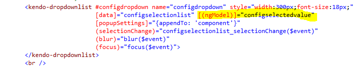 import { FormsModule } from '@angular/forms'; @NgModule({ imports: [ BrowserModule, BrowserAnimationsModule, DropDownsModule, FormsModule ], declarations: [ AppComponent ], bootstrap: [ AppComponent ]})export class AppModule { }The reported error (Cannot read property 'wrapper' of undefined) implies that this.drop is undefined. This means that the kendo-dropdownlist element is not successfully taken from the DOM. Make sure that ViewChild is imported properly and used as follows: