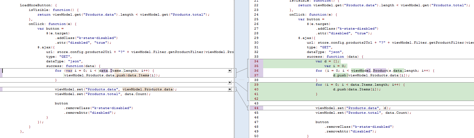 <section> <div class="clearfix" data-role="listView" data-bind="source: Products.data" data-template="product-template"></div></section>attached is image where left side is code causes duplicate rendering randomly.