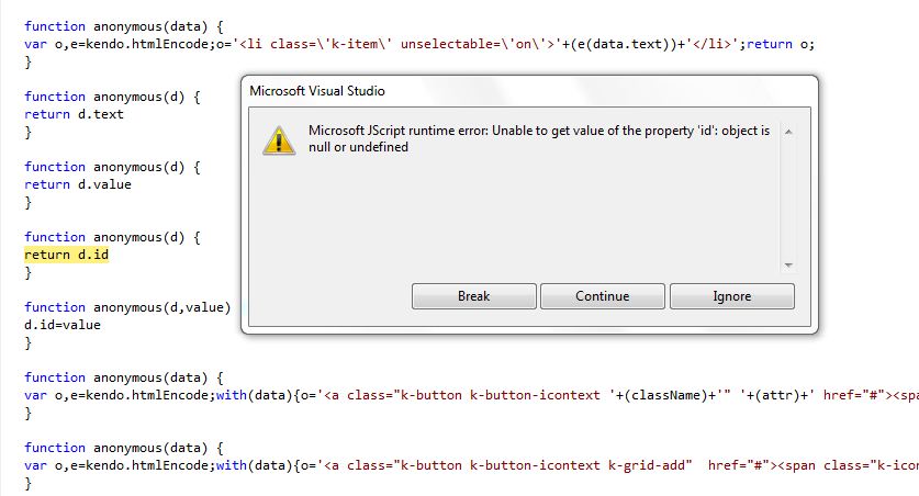 I need to create a editable kendo grid - Batch eiditing , which adds/removes a row . Here i acheived it with kendo grid- batch editing as mentioned in the demo. My requirment is something like i need to initialize the grid with no data . But i was not able to do it & hence giving some sample data to initialise it. But i need the grid with an empty data but only with the header with options to add record. Also if i delete all the grid rows & try to add the first row then it is giving me error "Microsoft JScript runtime error: Unable to get value of the property 'id': object is null or undefined" , attaching the screenshot of the same.