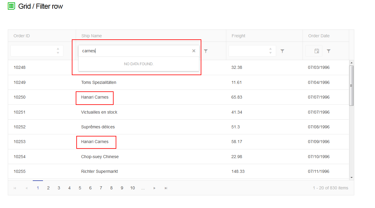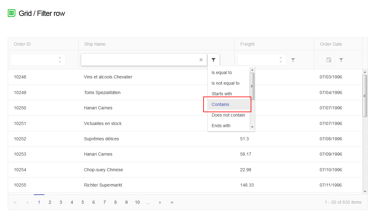 In the demo at http://demos.telerik.com/aspnet-mvc/grid/filter-row, you can see that the Ship Name column filter defaults to Contains. However, if you type in the search box, a dropdown of results shows but it is using the filter Starts With. If I hit Enter, the column will be filtered by Contains. However, the dropdown is confusing and wrong.