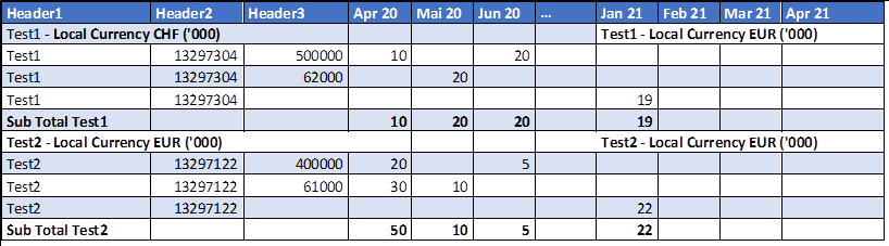 Thanks for your reply , but my requirement is different here. Let me explain clearly . Based on current date we need to display 18 months data which it comes dynamically . In that 18 months max of 3 years will come . for example : Aug2020 ....Jan2022. Here i have a currency field which will vary form year to year . so i need to group those columns by year and display group hearder(col1: curreny1) (col2:currency)