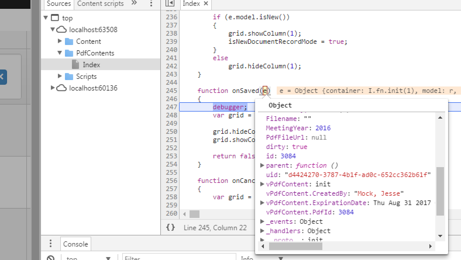 The problem is when editing, the datepicker displays the proper date, but when you click Save, vPdfContent.ExpirationDate is null and validation fails Stating: