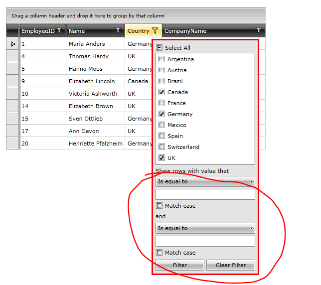 in our WPF application we used filter which you can see in the attachment. After that we decided bought and for our new Web Application, use Kendo for JQuery.