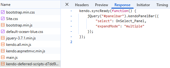 I have tested the case locally, and it appears that the Select event of the PanelBar triggers only once when a panel is selected at my end. Would you please review the content of the kendo-deferred-scripts-XXX.js file and confirm that the PanelBar initialization script is added only once in the file? For example:
