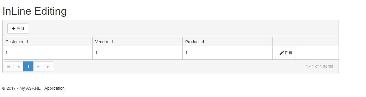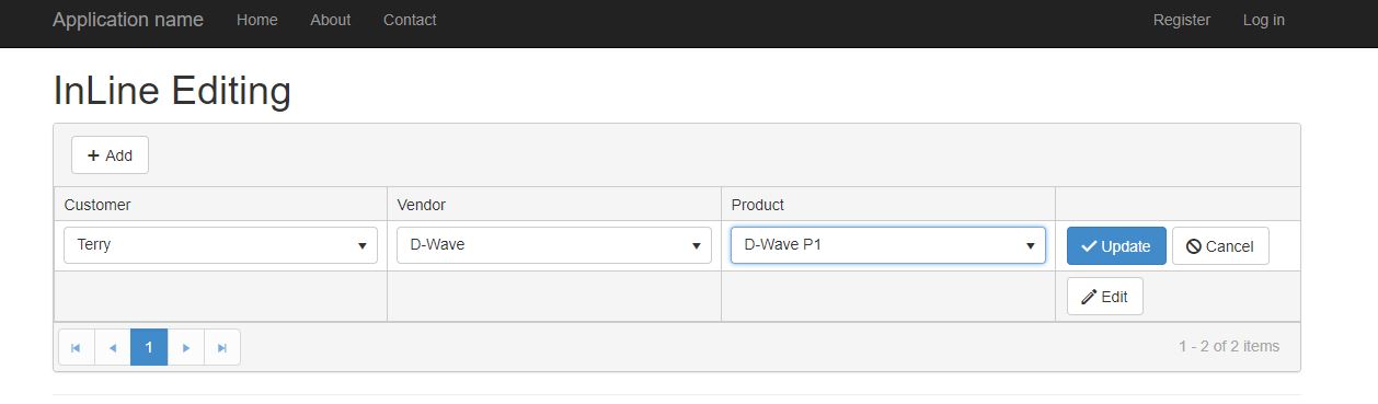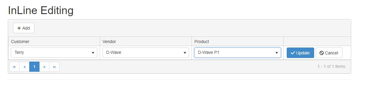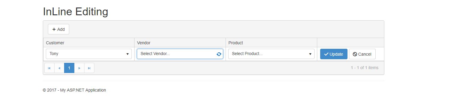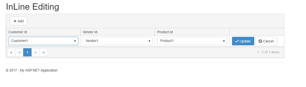 Hello again Stefan, please ignore my previous reply i fixed that issues. But now, i appear to have a more serious issues. After i am done selecting the values i want from the drop-down lists, when i click update, nothing show in fields. So i added //.ClientTemplate("#=Customer.CustomerName#") to the column thinking it would display the name. Sadly, it did not and whats worse, when i click the add button, the grid doesn't respond. How can this be remedied?.