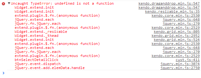 After upgrading from v2012.2.913 to v2012.3.1315 my kendo grid no longer draws. I had been using jQuery 1.7.1, but I did try upgrading to 1.9.1. The error is the same. Here's all the info I can give you.