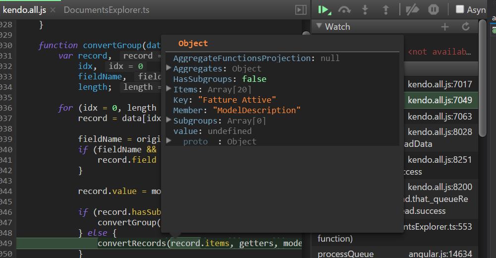 convertGroup(record.items, getters, modelInstance, originalFieldNames, fieldNames); <--- Here the problem !!