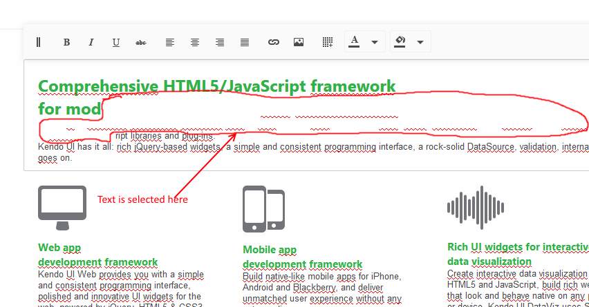 I have a problem with setting the selection color in Kendo Editor in inline mode.