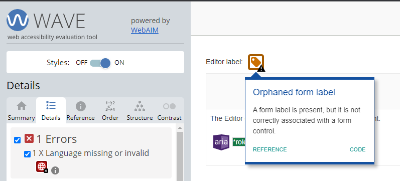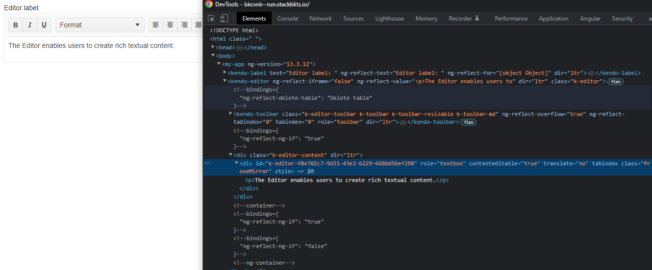 I am having an issue with kendo labels being marked as "orphaned form label" (label was not read by NVDA screen reader) when using the kendo editor with [iframe] set to false to have non-encapsulated style in the Editor.