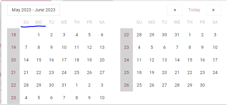 I am using kendo Multiview calendar . Current implementation is the start day of the week is from Sunday.