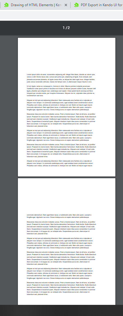 In Kendo-pdf-export, if an element is given margin-top and it occupies more than 1 page then the margin-top is applied to the element in all the pages.