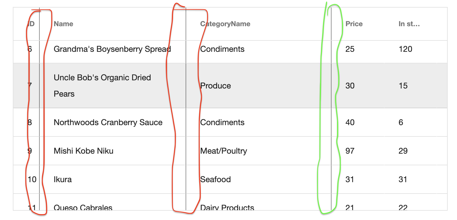 I have attached the sample image with grid three columns are locked, I need thick border at third column right on side (marked in green), do not need thick borders on column one & two (marked in red).