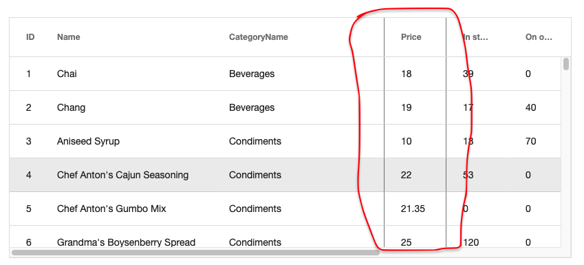 When lock more than one columns in grid, each column has thick border on right side, how do we have thick border only on last column?