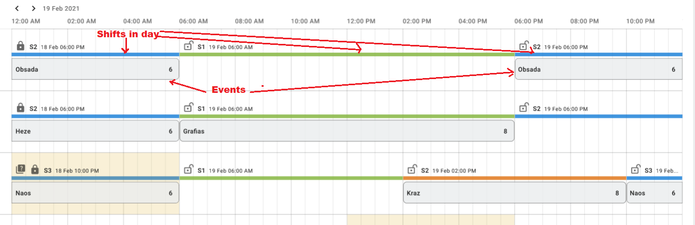 Against that i wanted to add events in Kendo Scheduler. Each day must have shift as show in below image